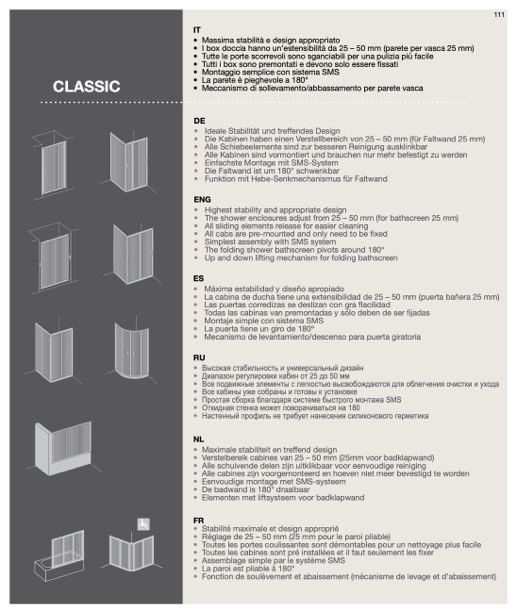 • Verstelbereik cabines van 25 – 50 mm (25mm voor badklapwand)