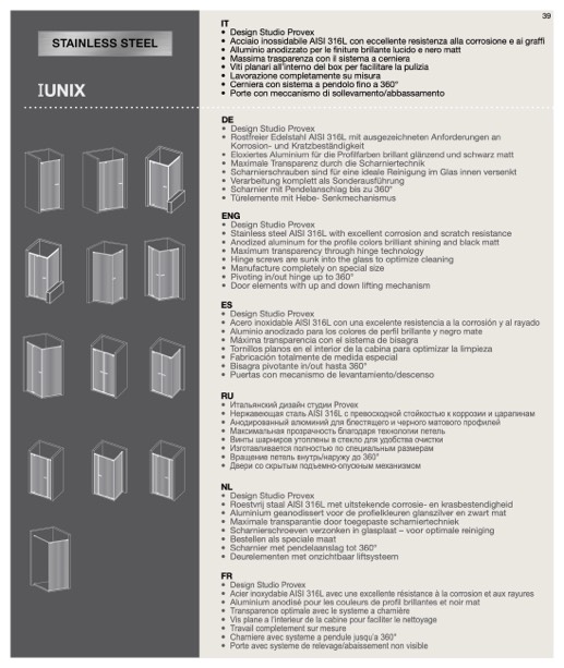• Acier inoxydable AISI 316L avec une excellente résistance à la corrosion et aux rayures