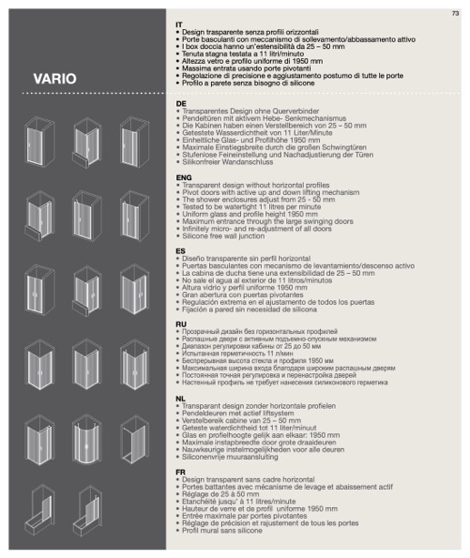 • I box doccia hanno un’estensibilità da 25 – 50 mm