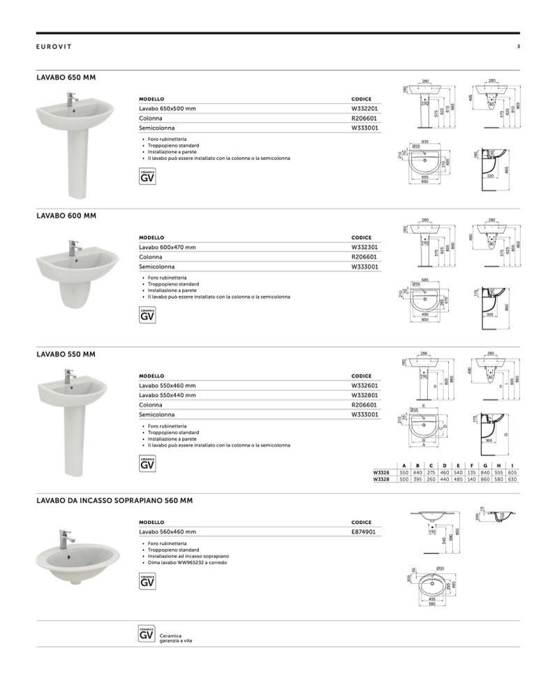 • Dima lavabo WW965232 a corredo