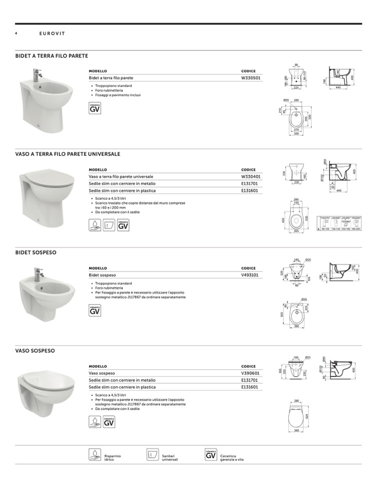 BIDET A TERRA FILO PARETE