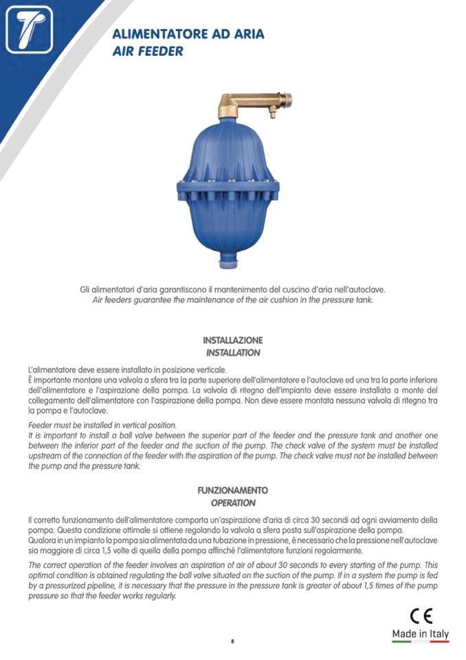 Qualora in un impianto la pompa sia alimentata da una tubazione in pressione, è necessario che la pressione nell’autoclave