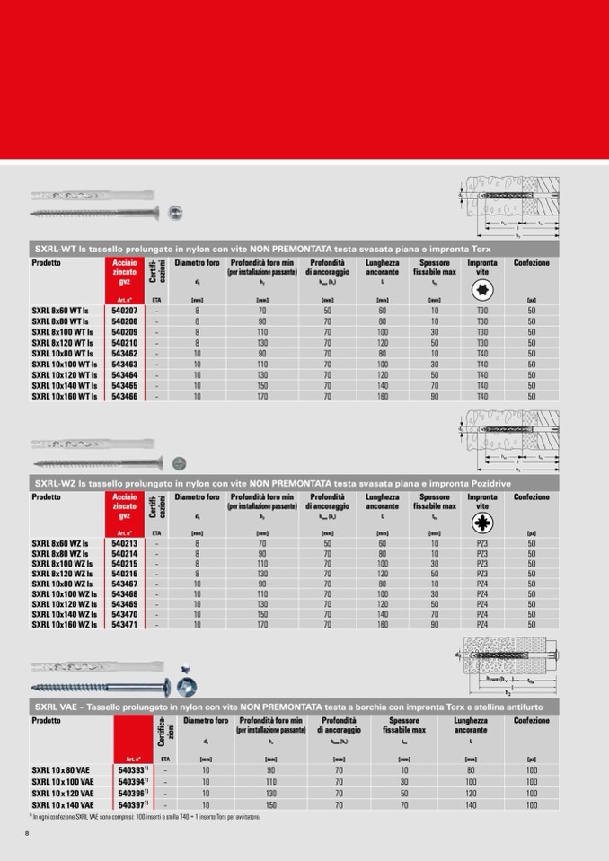 In ogni confezione SXRL VAE sono compresi: 100 inserti a stella T40 + 1 inserto Torx per avvitatore.
