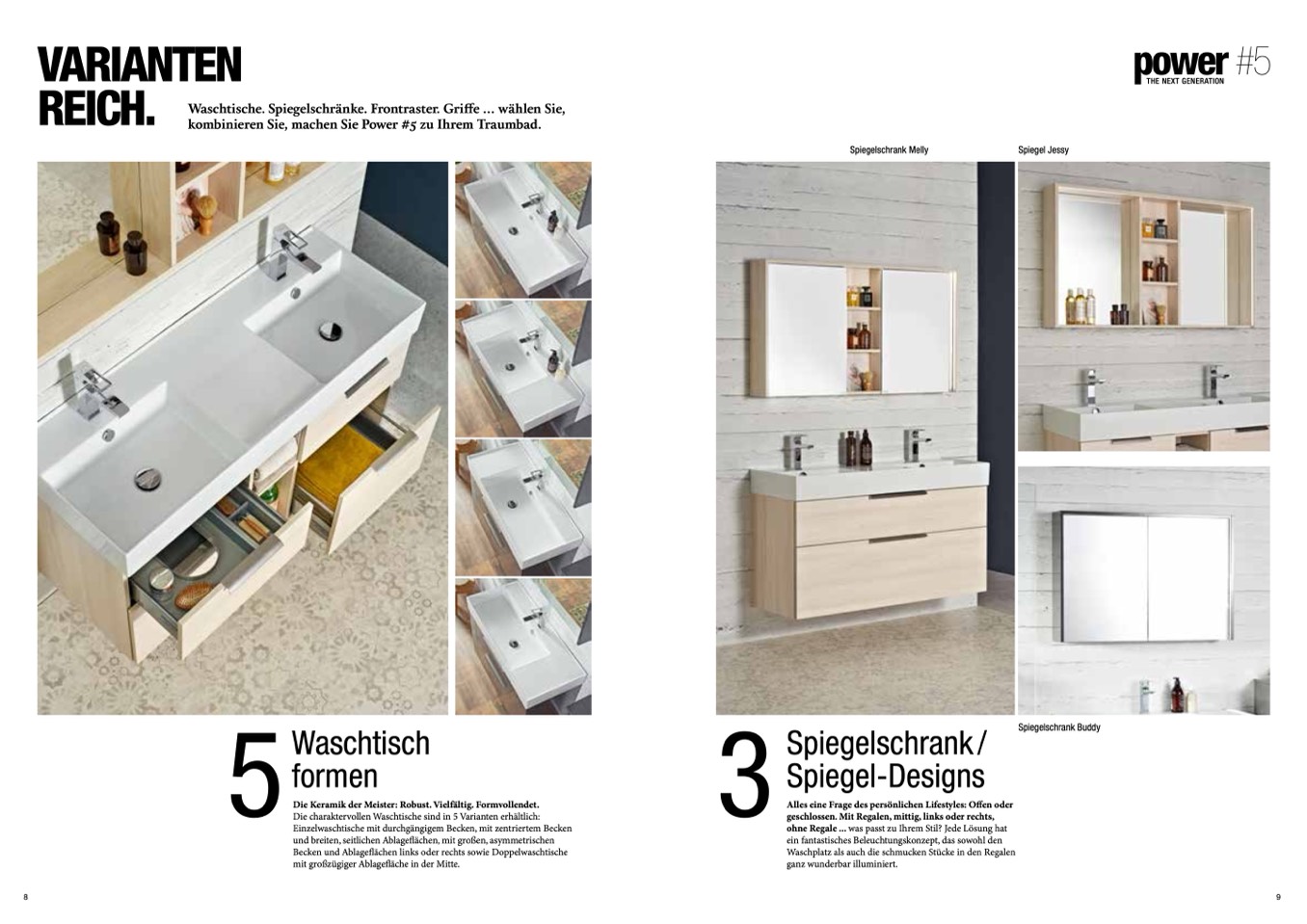 Die charaktervollen Waschtische sind in 5 Varianten erhältlich: