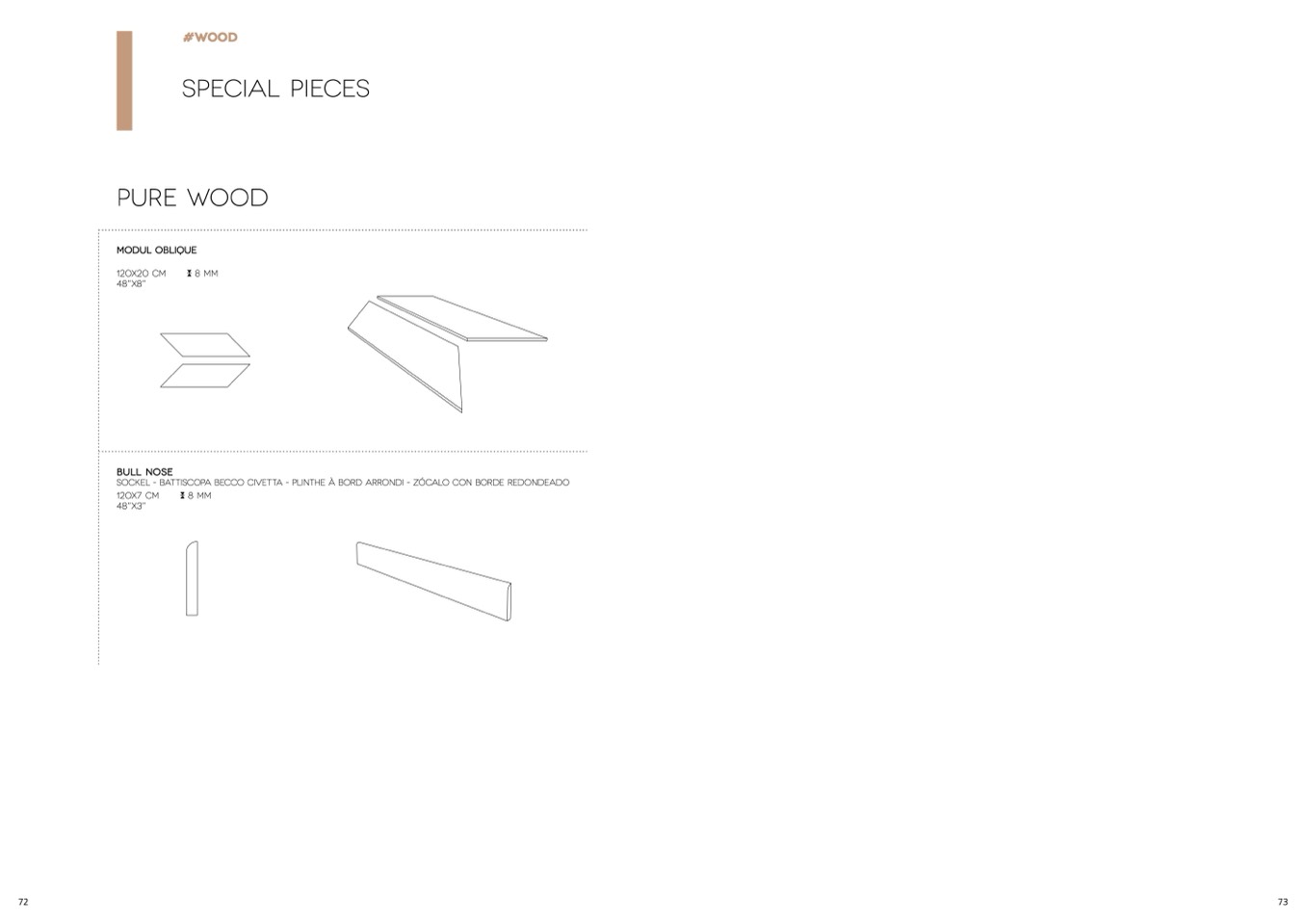 Sockel - battiscopa becco civetta - plinthe à bord arrondi - zócalo con borde redondeado