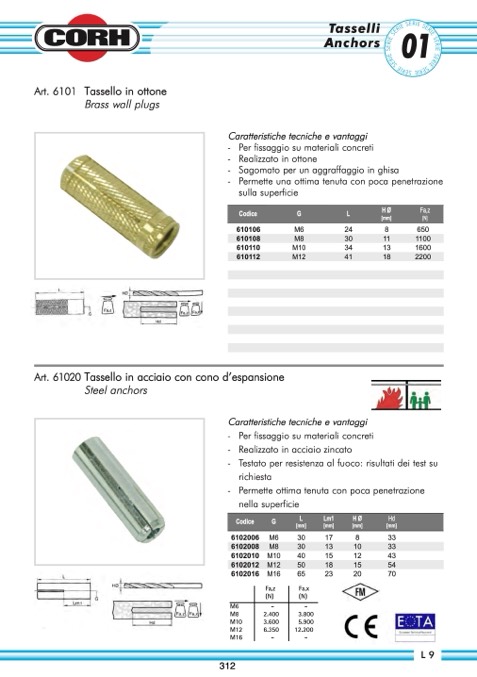 Art. 61020 Tassello in acciaio con cono d’espansione