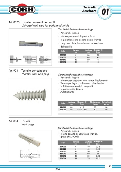 Tassello universali per forati
