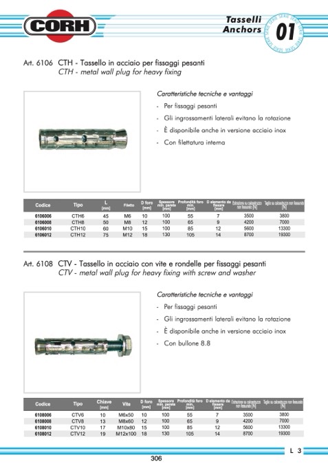 CTH - Tassello in acciaio per fissaggi pesanti