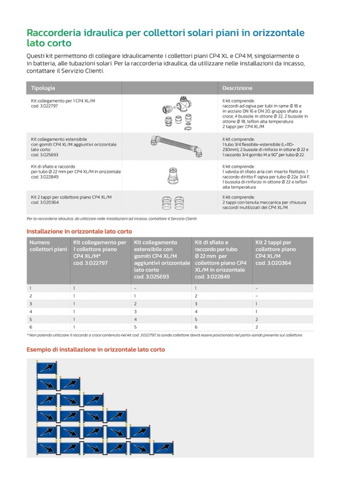 Per la raccorderia idraulica, da utilizzare nelle installazioni ad incasso, contattare il Servizio Clienti.