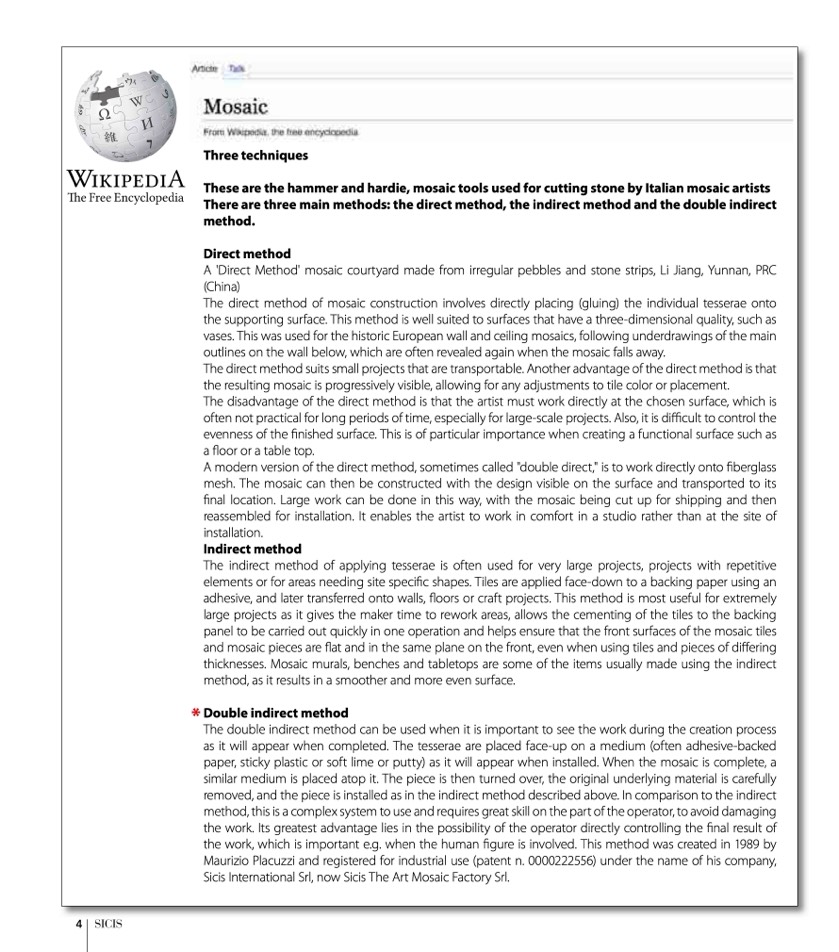 final location. Large work can be done in this way, with the mosaic being cut up for shipping and then