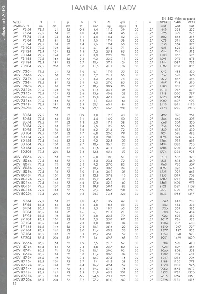 EN 442 - Valori per piastra