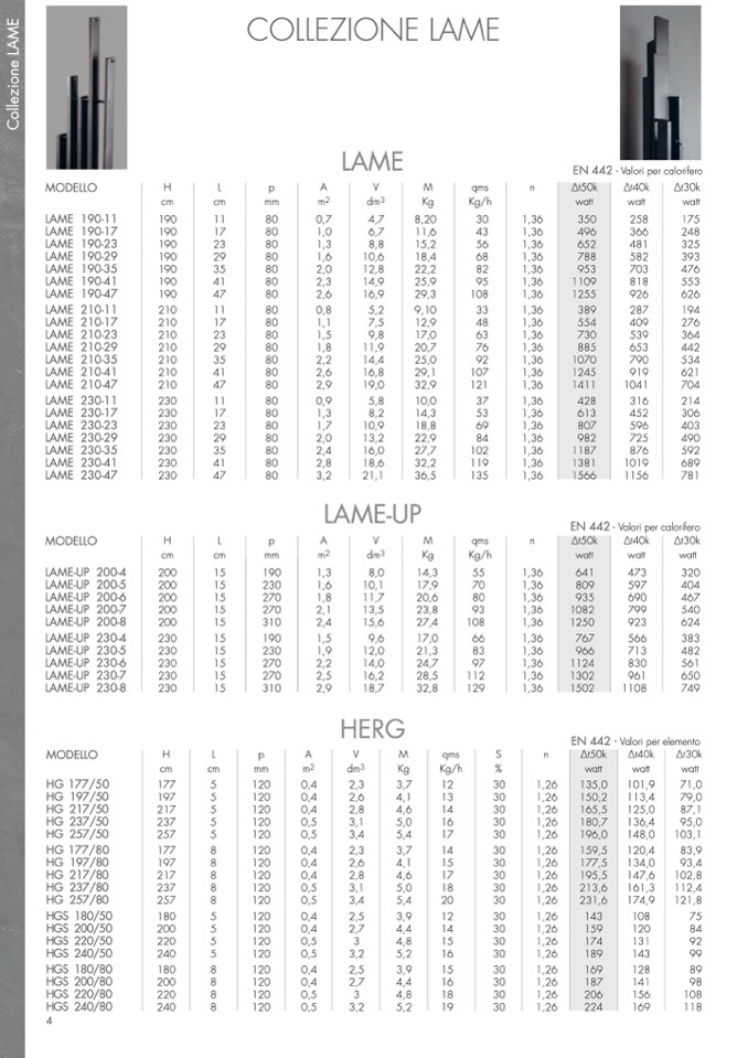 EN 442 - Valori per calorifero