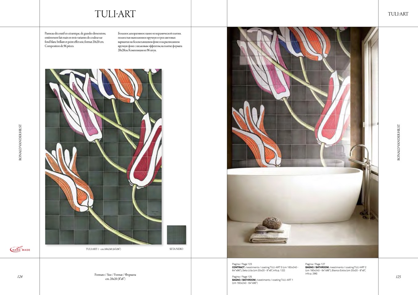 64”x96”), Seta Lilla (cm 20x20 - 8”x8”, info p. 122)