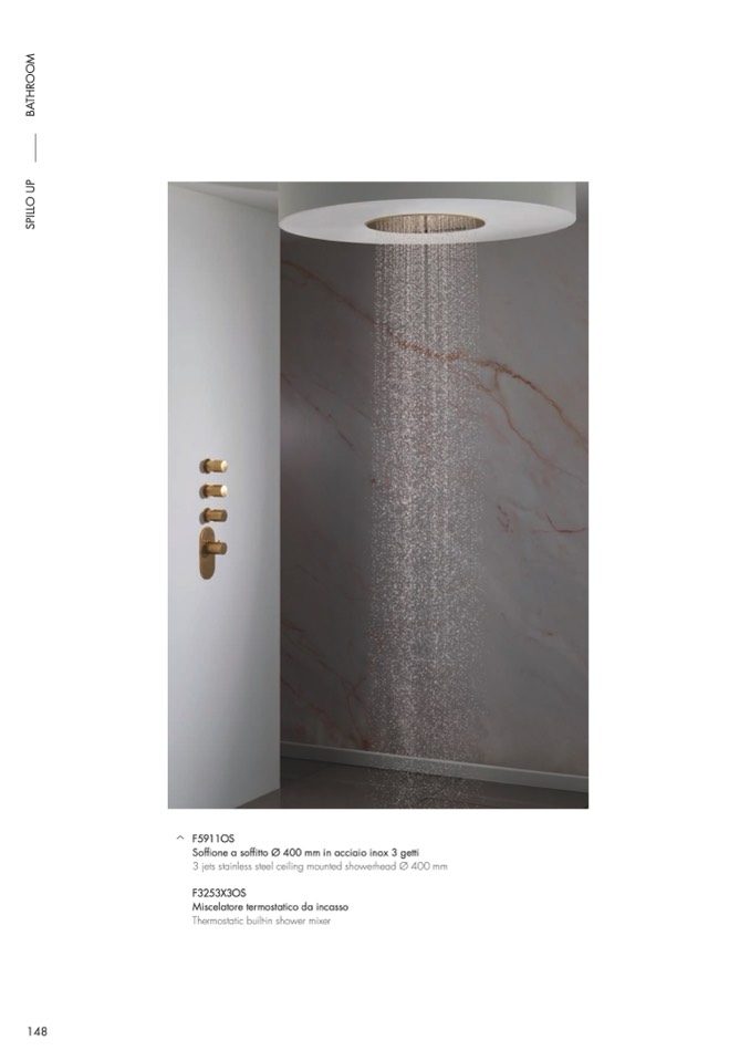 Soffione a soffitto Ø 400 mm in acciaio inox 3 getti