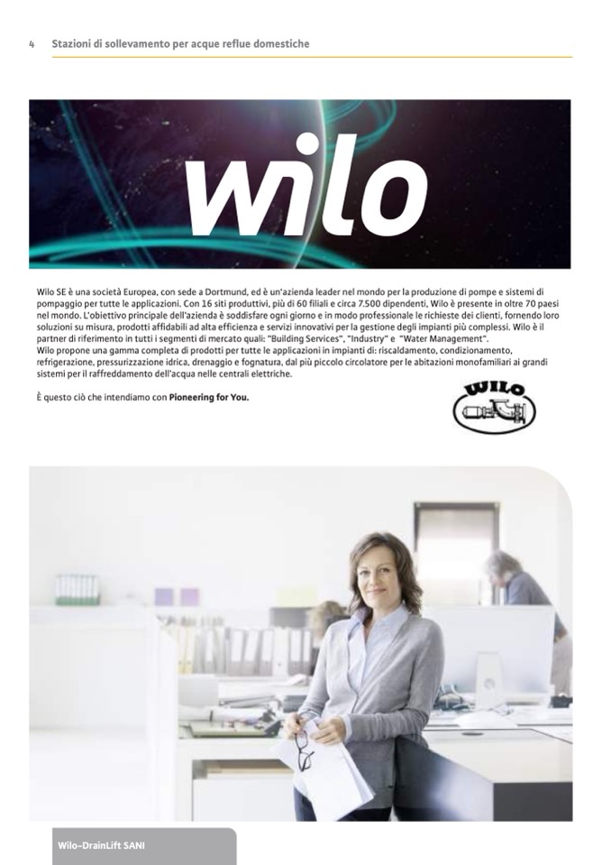 Wilo SE è una società Europea, con sede a Dortmund, ed è un‘azienda leader nel mondo per la produzione di pompe e sistemi di