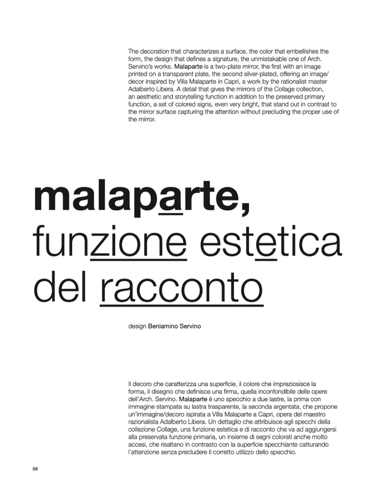 Servino’s works. Malaparte is a two-plate mirror, the first with an image