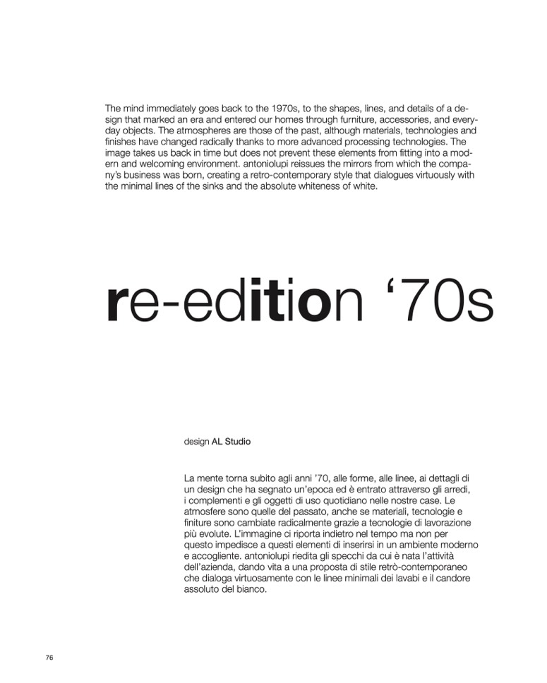 ern and welcoming environment. antoniolupi reissues the mirrors from which the compa-