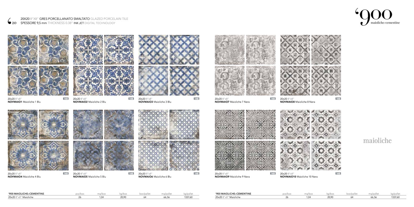 20x20 8”x8” Maioliche