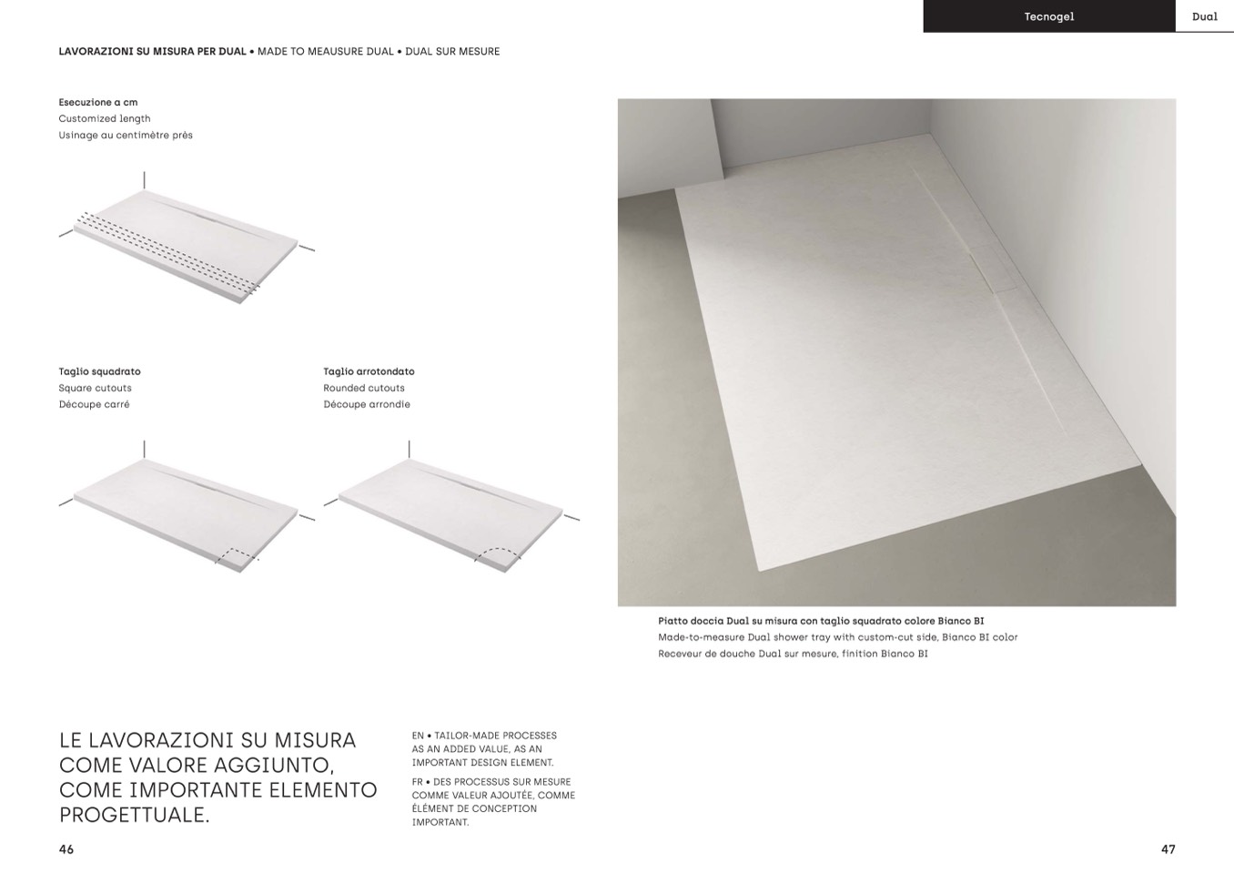 Receveur de douche Dual sur mesure, finition Bianco BI