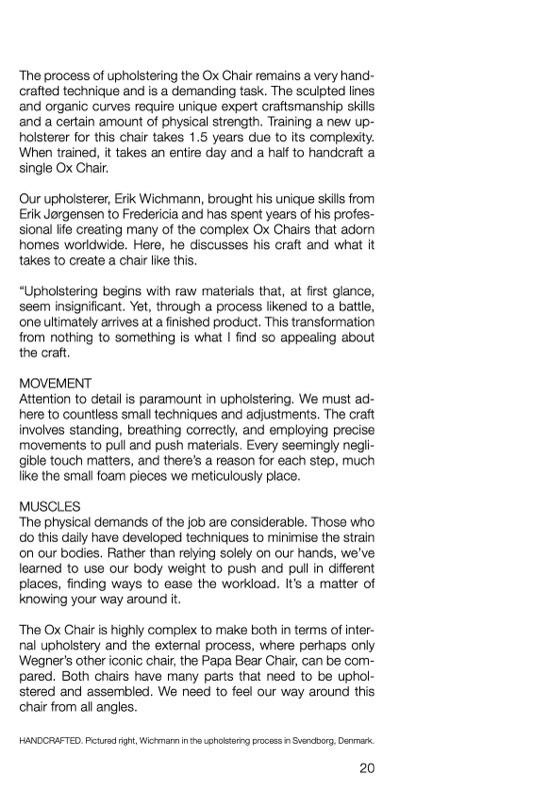 HANDCRAFTED. Pictured right, Wichmann in the upholstering process in Svendborg, Denmark.