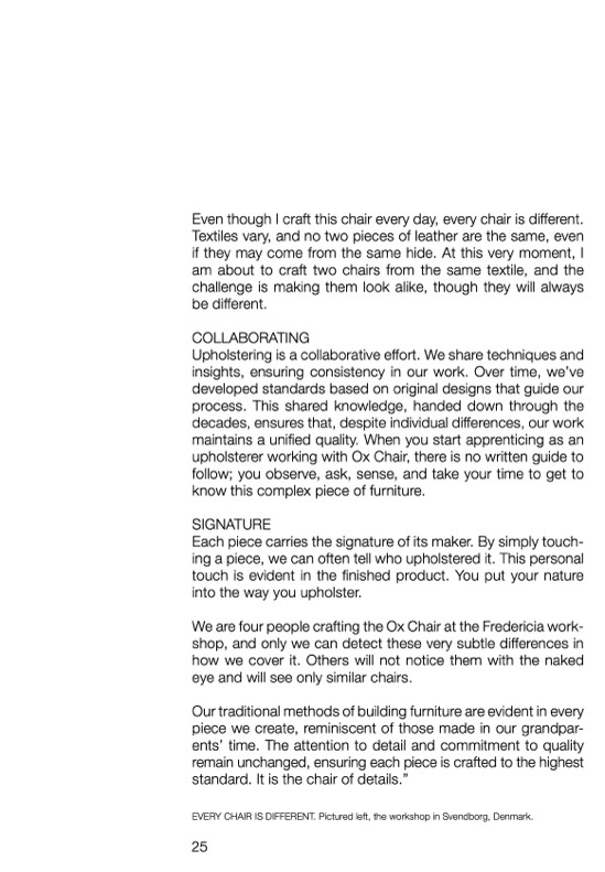 upholsterer working with Ox Chair, there is no written guide to
