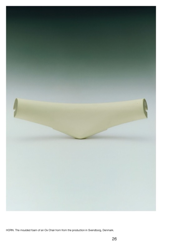 HORN. The moulded foam of an Ox Chair horn from the production in Svendborg, Denmark.