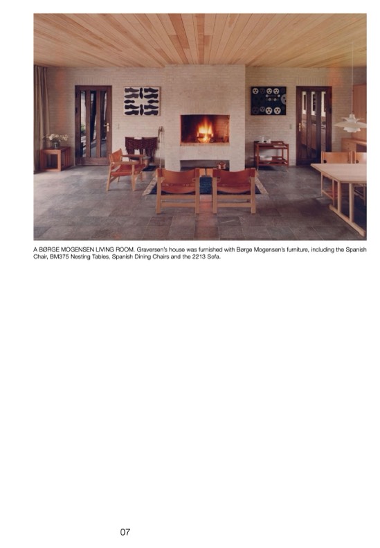 A BØRGE MOGENSEN LIVING ROOM. Graversen’s house was furnished with Børge Mogensen’s furniture, including the Spanish