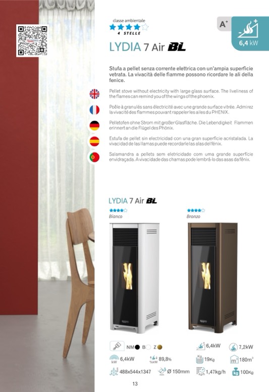 Stufa a pellet senza corrente elettrica con un’ampia supercie