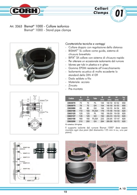 montato ogni due piani (dal diamentro 125 mm in su, uno per