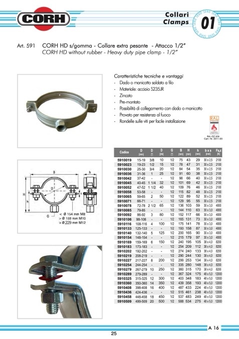 CORH HD s/gomma - Collare extra pesante - Attacco 1/2”