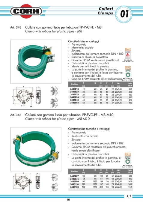 Collare con gomma liscia per tubazioni PP-PVC-PE - M8