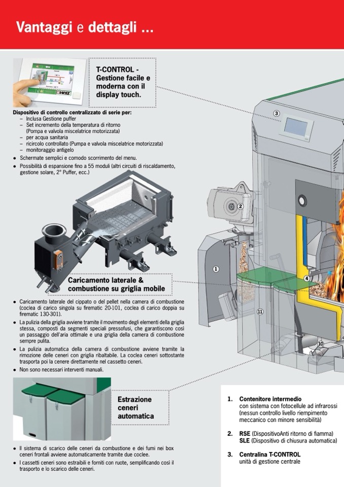 rimozione delle ceneri con griglia ribaltabile. La coclea ceneri sottostante