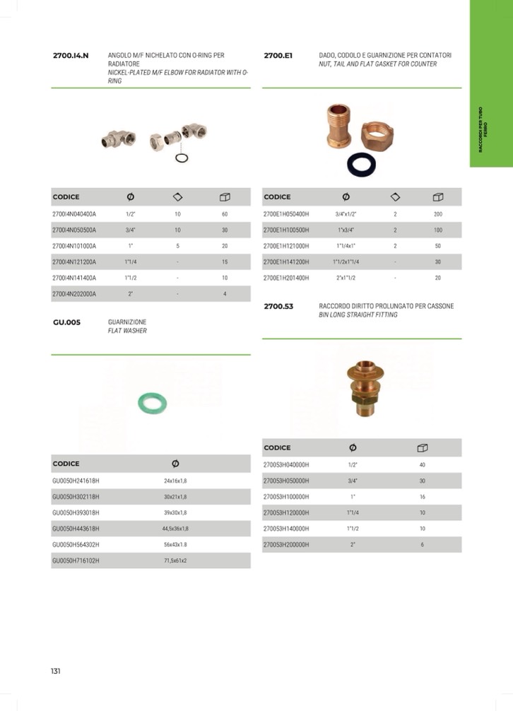 DADO, CODOLO E GUARNIZIONE PER CONTATORI