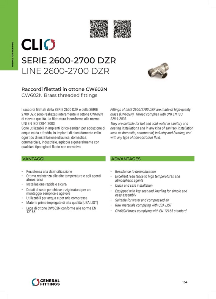 I raccordi filettati della SERIE 2600 DZR e della SERIE