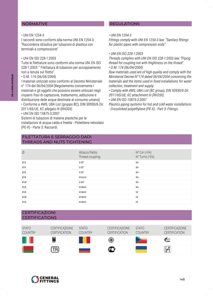 Threads complies with UNI EN ISO 228-1:2003 law: “Piping