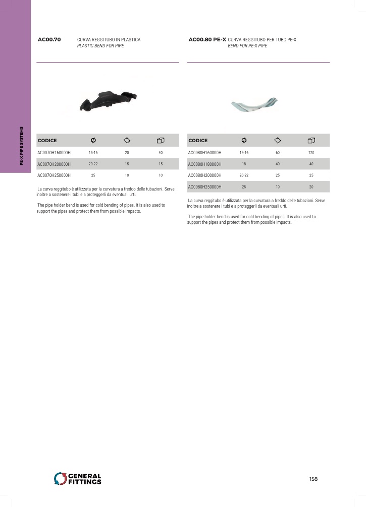 AC00.80 PE-X CURVA REGGITUBO PER TUBO PE-X