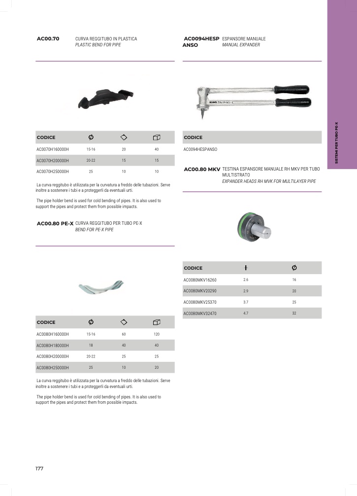 AC00.80 PE-X CURVA REGGITUBO PER TUBO PE-X