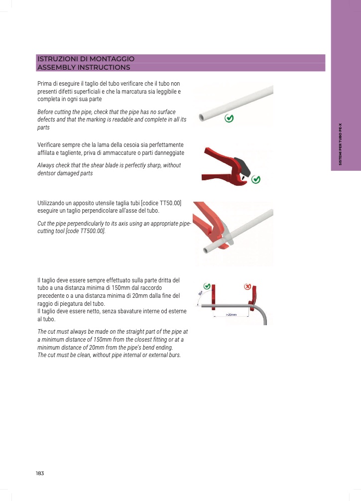 Utilizzando un apposito utensile taglia tubi [codice TT50.00]