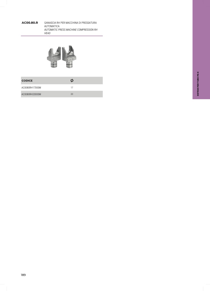 GANASCIA RH PER MACCHINA DI PRESSATURA