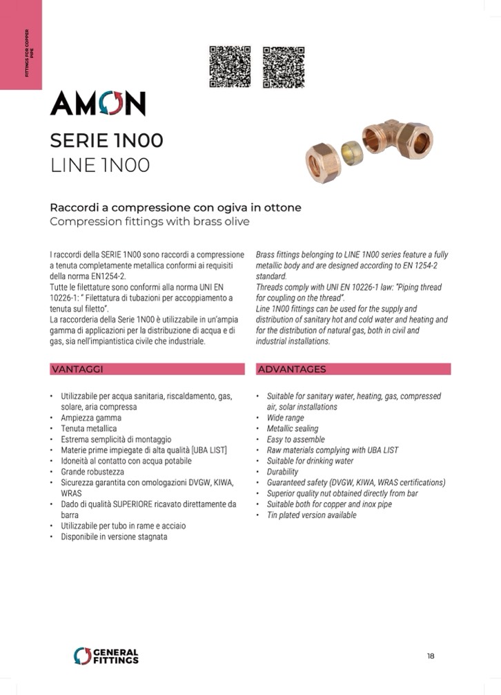 I raccordi della SERIE 1N00 sono raccordi a compressione