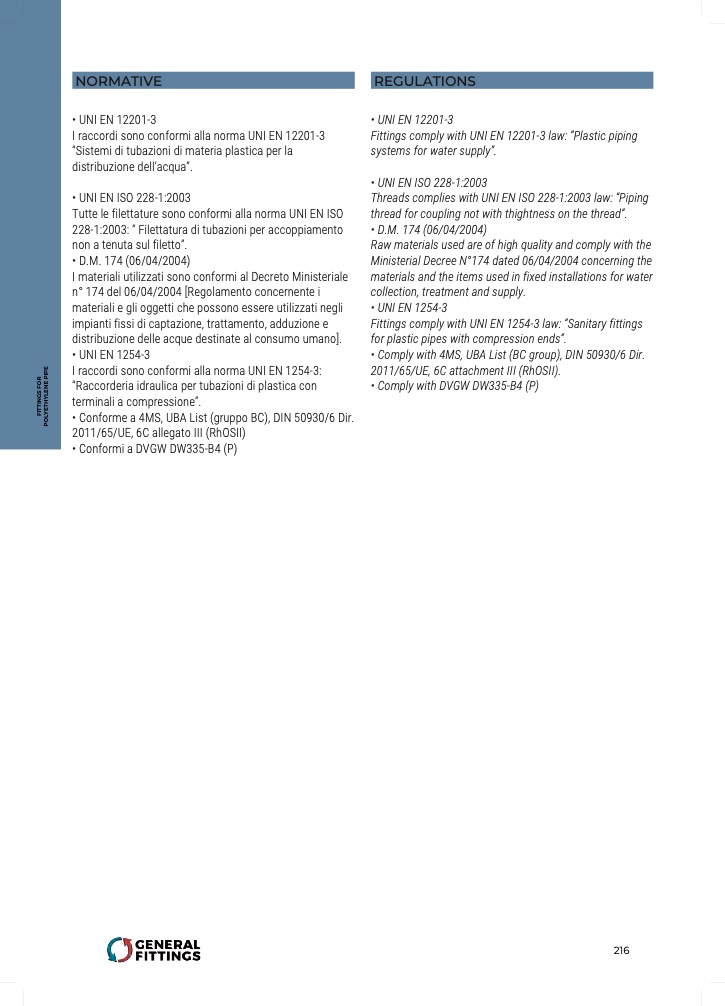 Fittings comply with UNI EN 12201-3 law: “Plastic piping