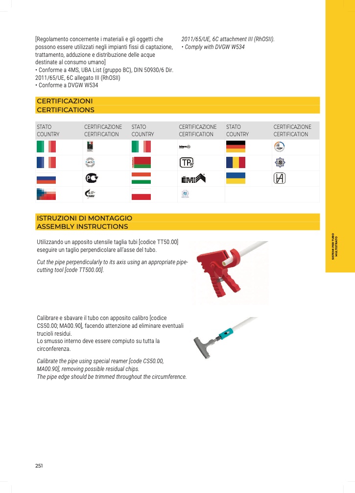 Calibrare e sbavare il tubo con apposito calibro [codice