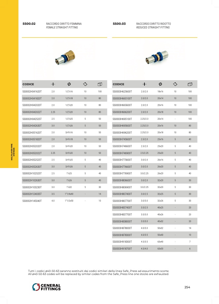 All ø40-50-63 codes will be replaced by similar codes from the Safe_Press line one stocks are exhausted.