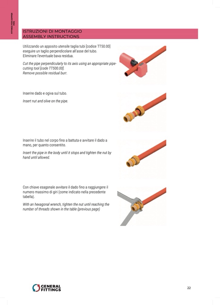 Utilizzando un apposito utensile taglia tubi [codice TT50.00]