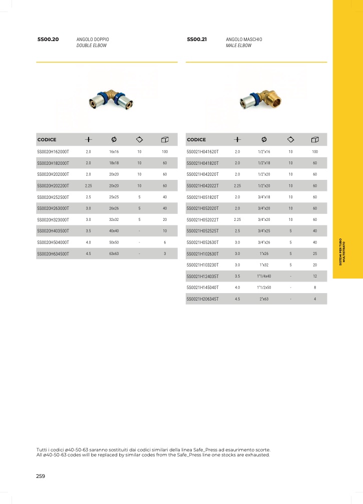 Tutti i codici ø40-50-63 saranno sostituiti dai codici similari della linea Safe_Press ad esaurimento scorte.