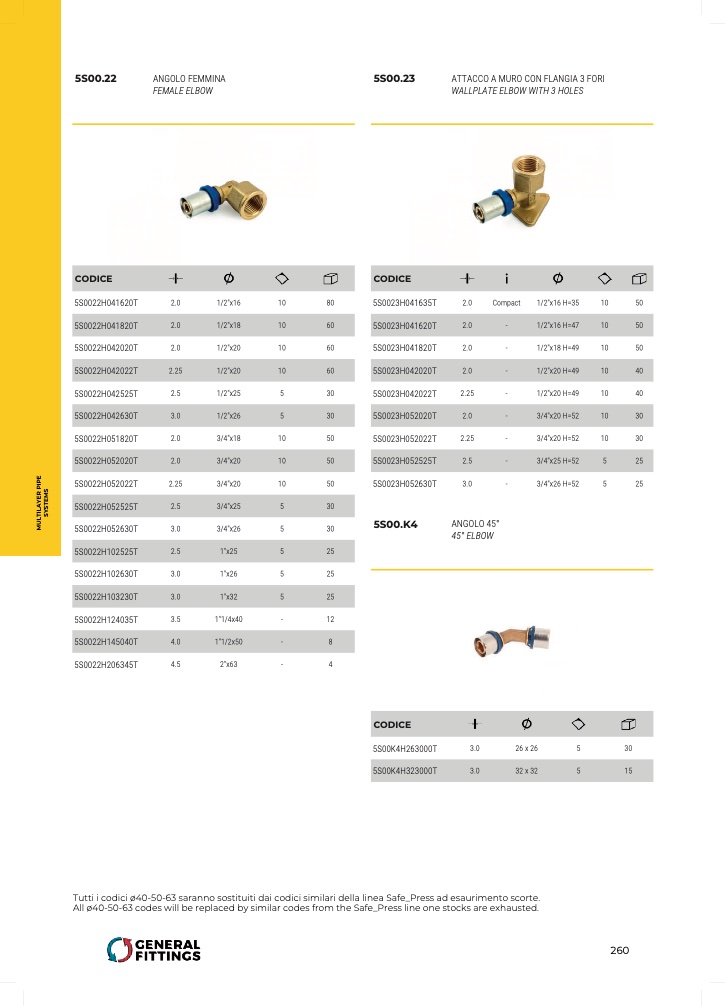 All ø40-50-63 codes will be replaced by similar codes from the Safe_Press line one stocks are exhausted.