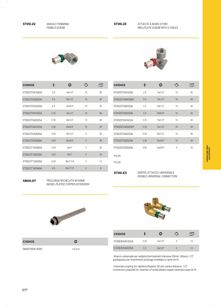 predisposto per inserimento prolunga nichelata in rame dn14.