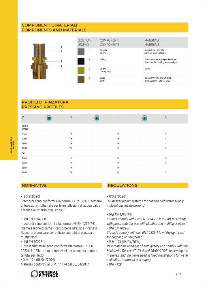 Fittings comply with UNI EN 1254-7-8 law. Part 8: "Fittings