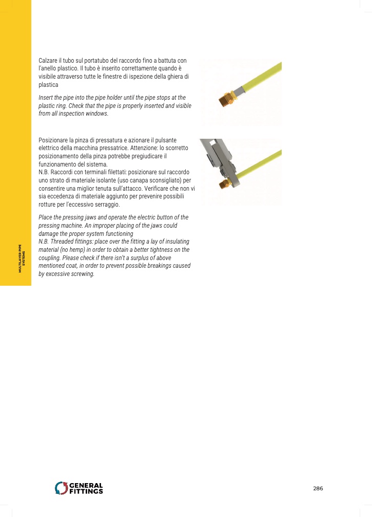 N.B. Threaded fittings: place over the fitting a lay of insulating