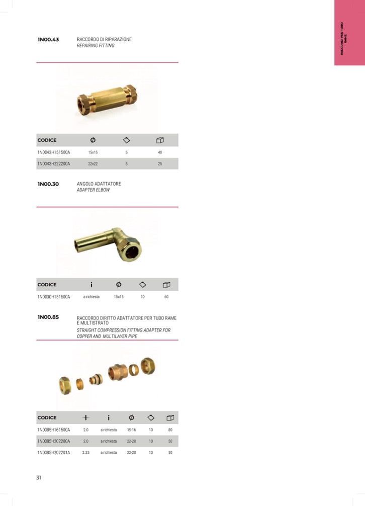 RACCORDO DIRITTO ADATTATORE PER TUBO RAME